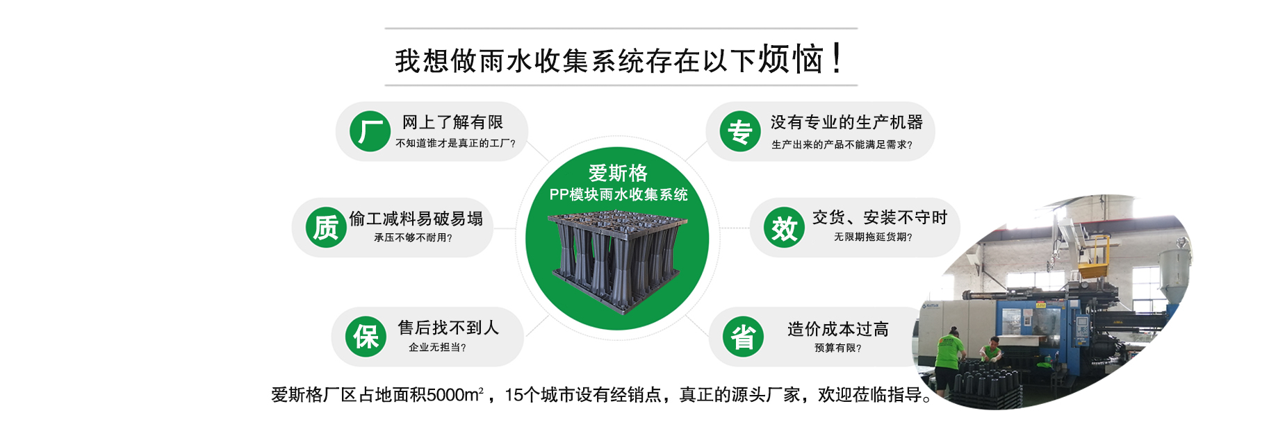 廣州愛斯格環保科技有限公司是一家集雨水收集系統研發、PP模塊生產、一體化機電設備生產、咨詢設計與安裝、運營管理與生產銷售為一體的“EPC總承包模式”高科技企業,已在雨水回收利用及其綜合業務方面處于優秀地位。 我司擁有強有力的團隊支持,可迅速提供技術解決方案與成本的估算,提供技術指導與推廣的協作工作。 我司在海綿工程企業中以質量可靠聞名,設計系統包括:初期雨水排除器、雨水回收一體系統、高架道路雨水回收系統、公路自體排水蓄水凈化系統、洪水調蓄雨水回用系統、適合新開發區域的收集系統、三功能蓄水池以及小海綿,中海綿,大海綿工程的解決方案等。···